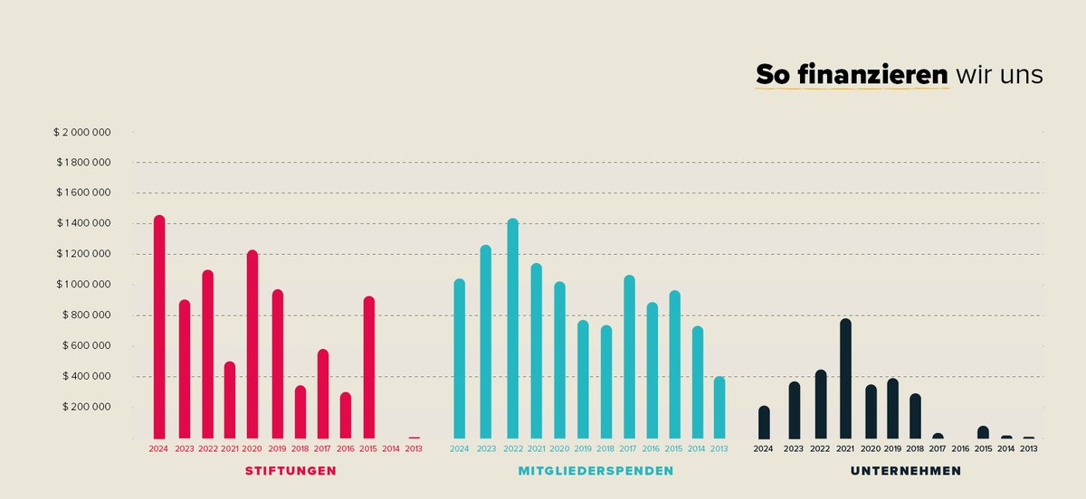 | Jahr | Stiftungen | Mitgliederspenden | Unternehmen | GESAMT |