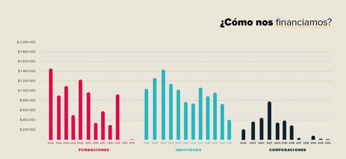 En 2024, 36% de nuestros ingresos provinieron de 6,201 donaciones individuales de en promedio $33 USD. Nuestra meta es que nuestros donantes nos sostengan financieramente para poder rendir cuentas a la comunidad a la que servimos.